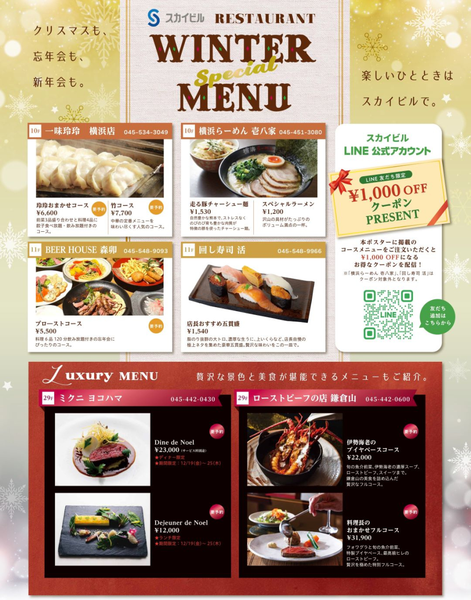 LINEクーポン配信中!スカイビルウィンターメニュー