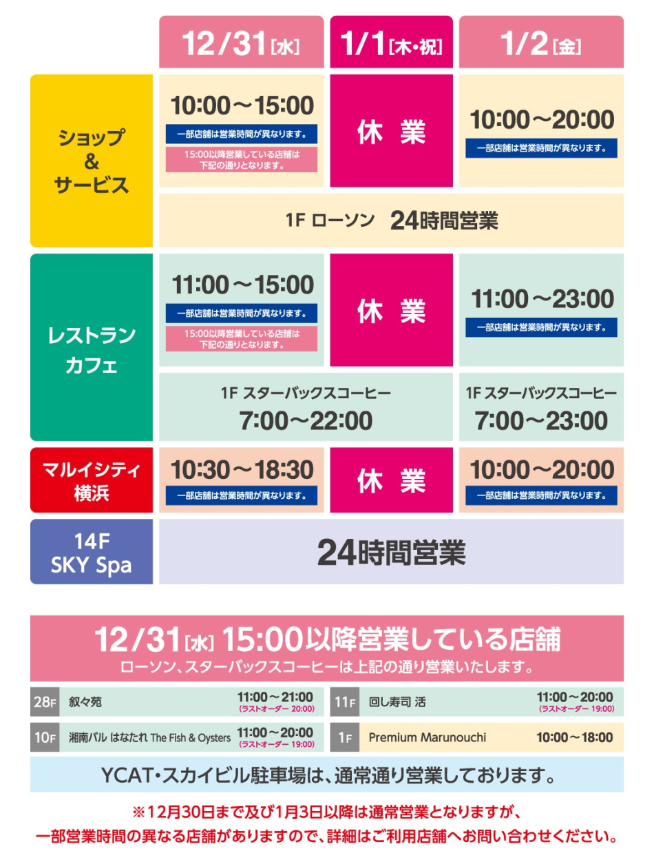 ※スカイスパYOKOHAMAは通常営業いたします。詳細はスカイスパYOKOHAMAの公式サイトにてご確認ください。