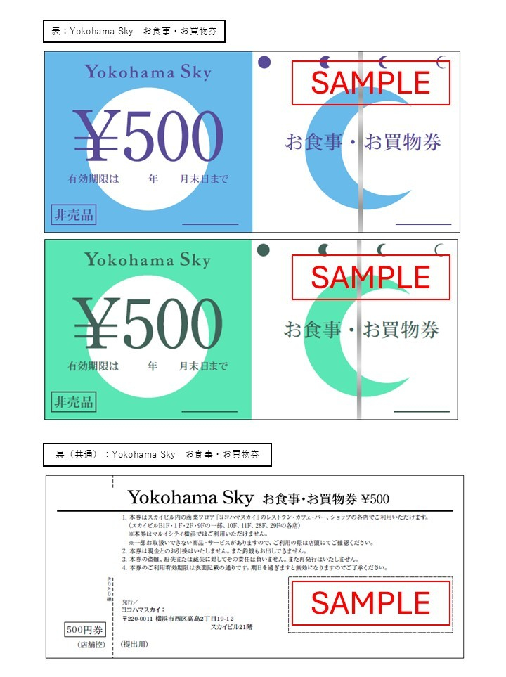 ※「Yokohama Sky お食事・お買物券」のご利用有効期限は表面記載の通りです。期日を過ぎますと無効になりますのでご了承ください。