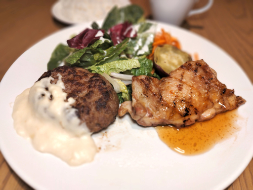・自家製ハンバーグ~チーズソース~&グリルチキン~ジンジャーソース~