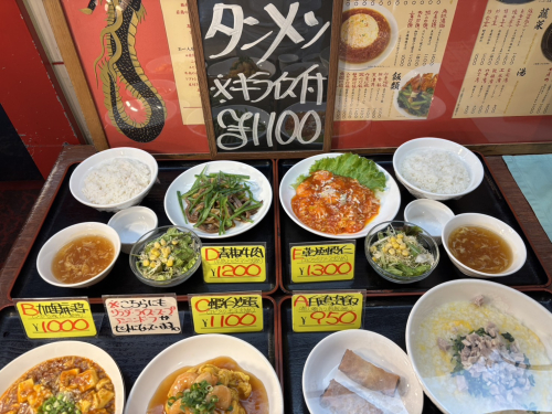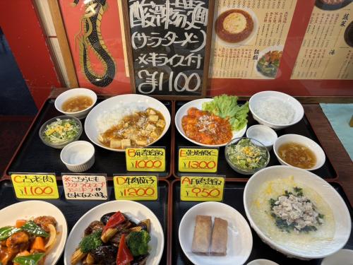 ランチセットにはご飯、サラダ、スープ、杏仁豆腐が付きます。